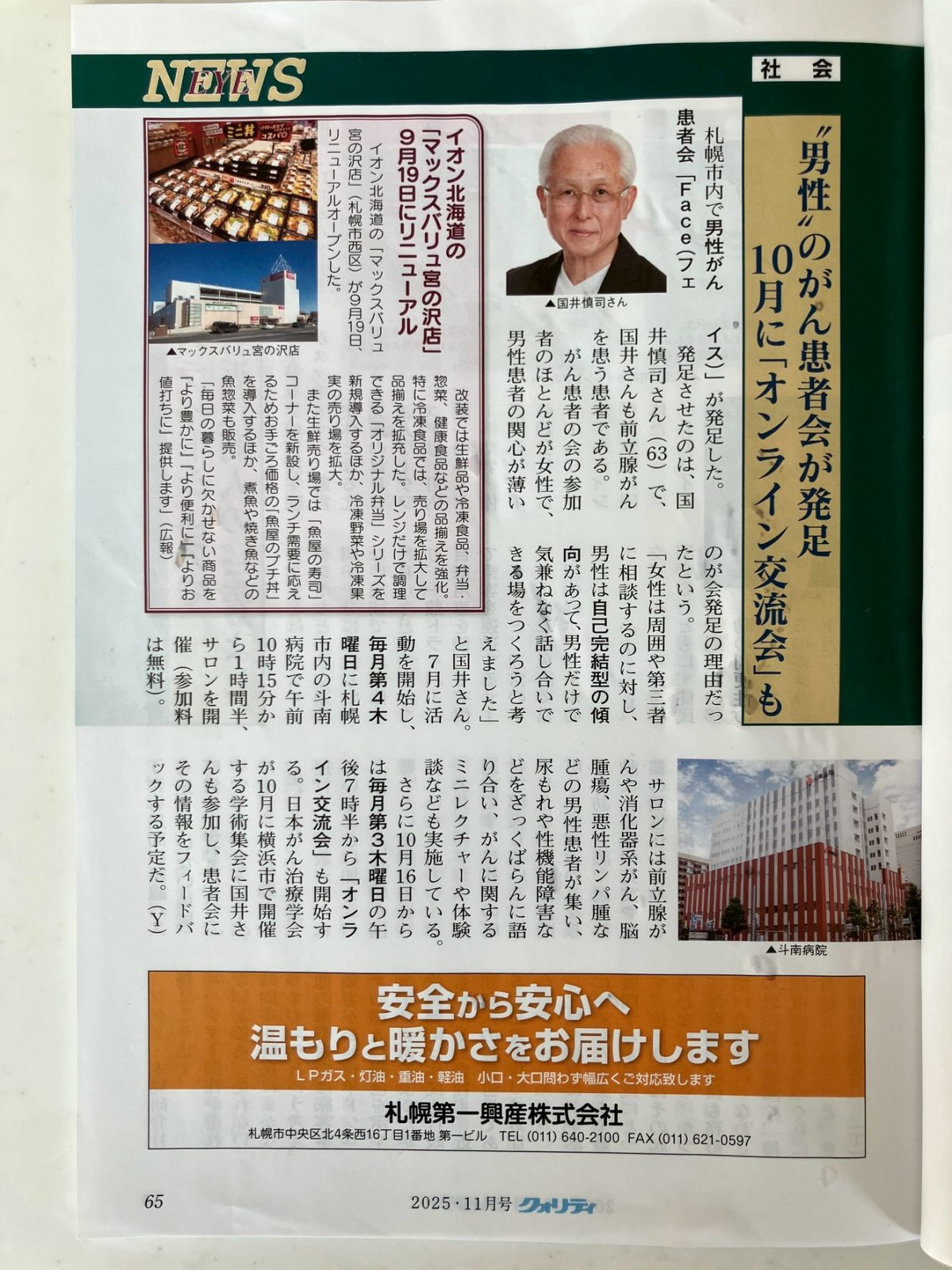 この度道民雑誌「月刊クオリティ11月号」にFaceが掲載されました。 -